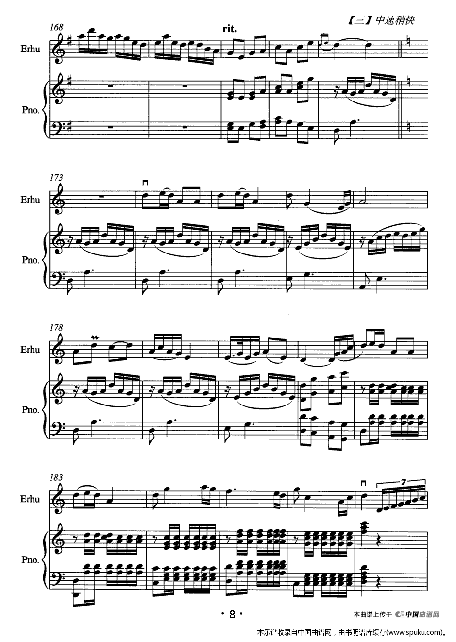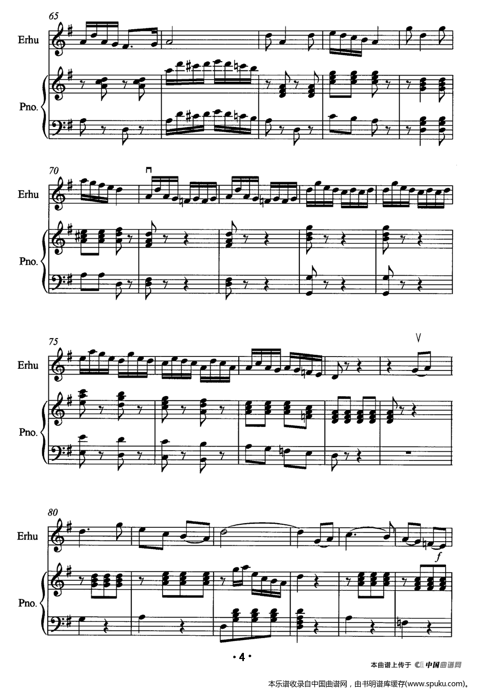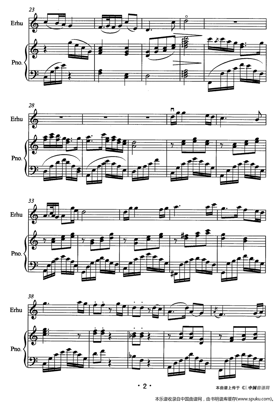 - [二胡谱,歌谱,扬琴谱] 二泉映月 二胡独奏 扬琴伴奏