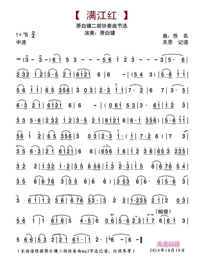 满江红 萧白镛二胡协奏曲节选
