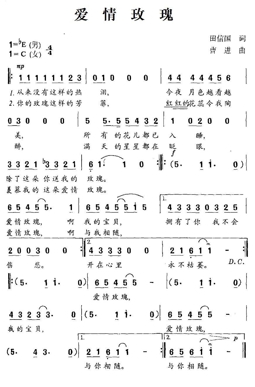 - [歌谱] 爱情红玫瑰