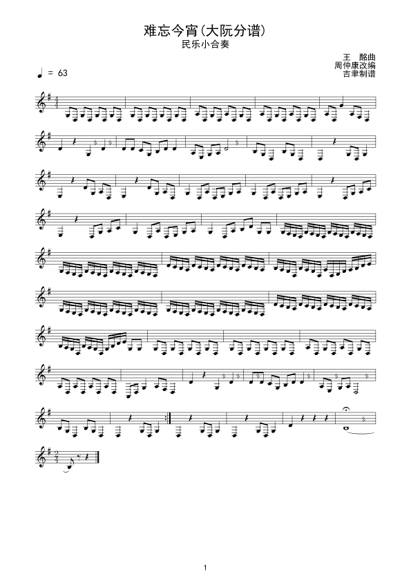 - [分谱,歌谱,总谱] 难忘今宵 大阮