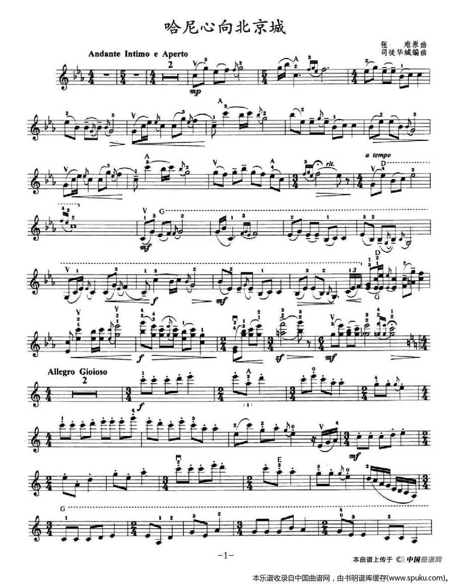 - [钢琴谱,小提琴谱] 哈尼心向北京城 小提琴 钢琴伴奏