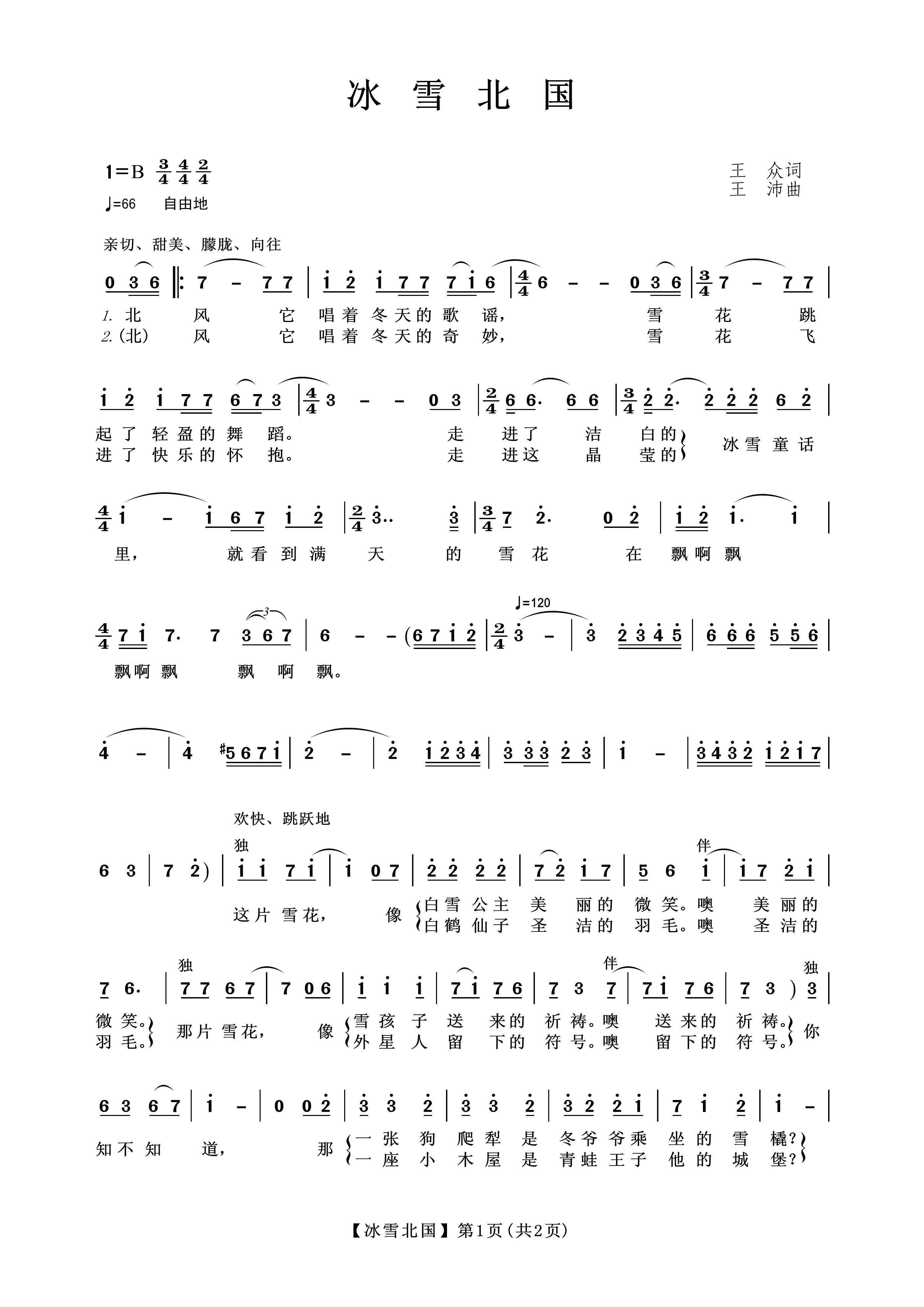 - [歌谱] 北国风