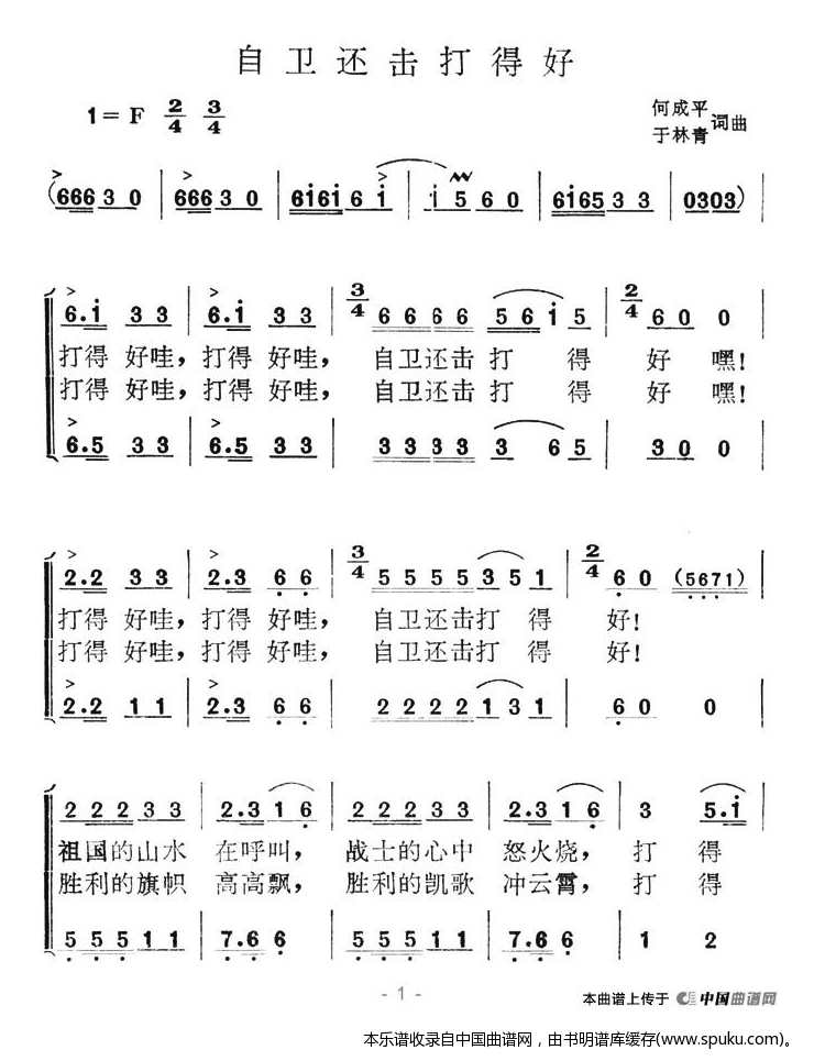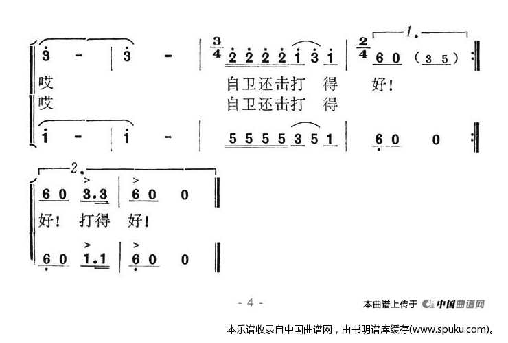 - [歌谱] 自卫还击打得好
