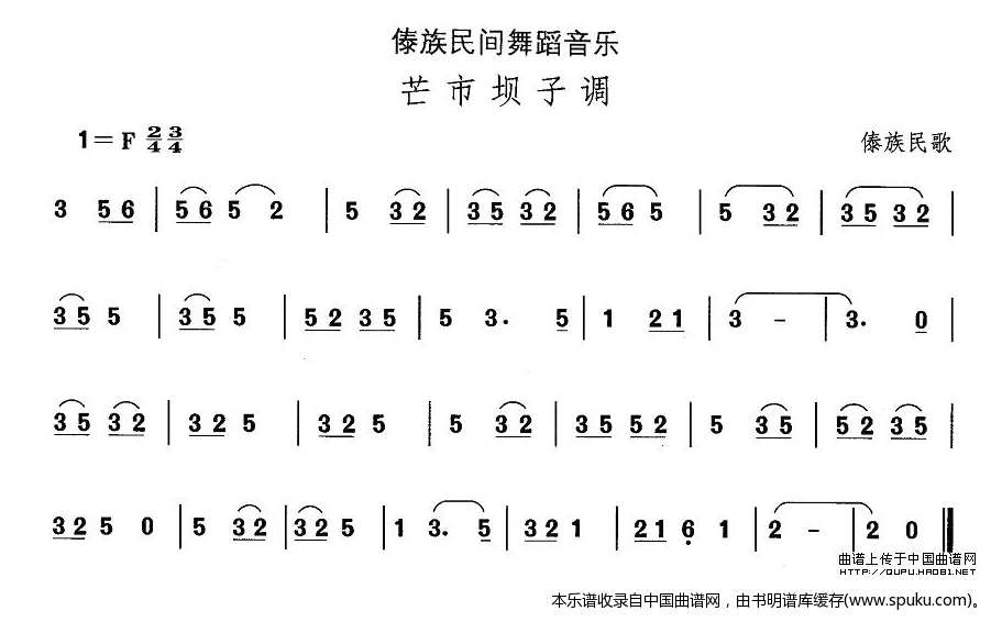 > 中国民族民间舞曲选 十四 傣族舞蹈 芒市坝子 乐器谱