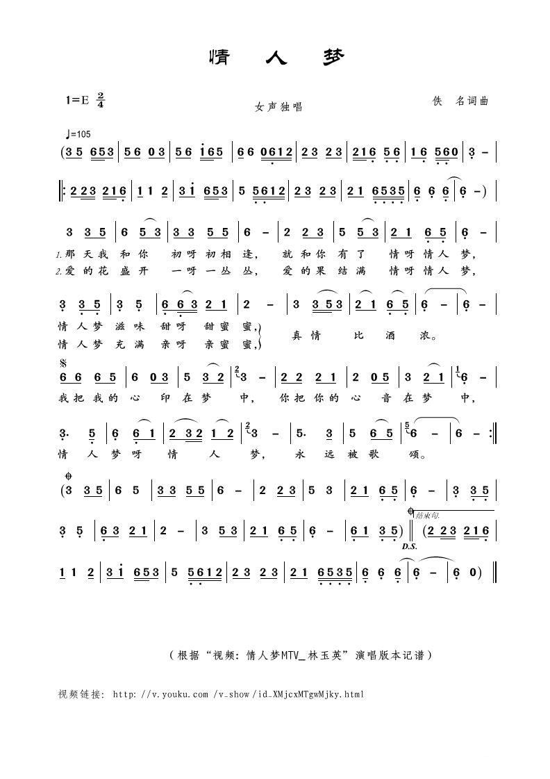 情人梦 女声独唱