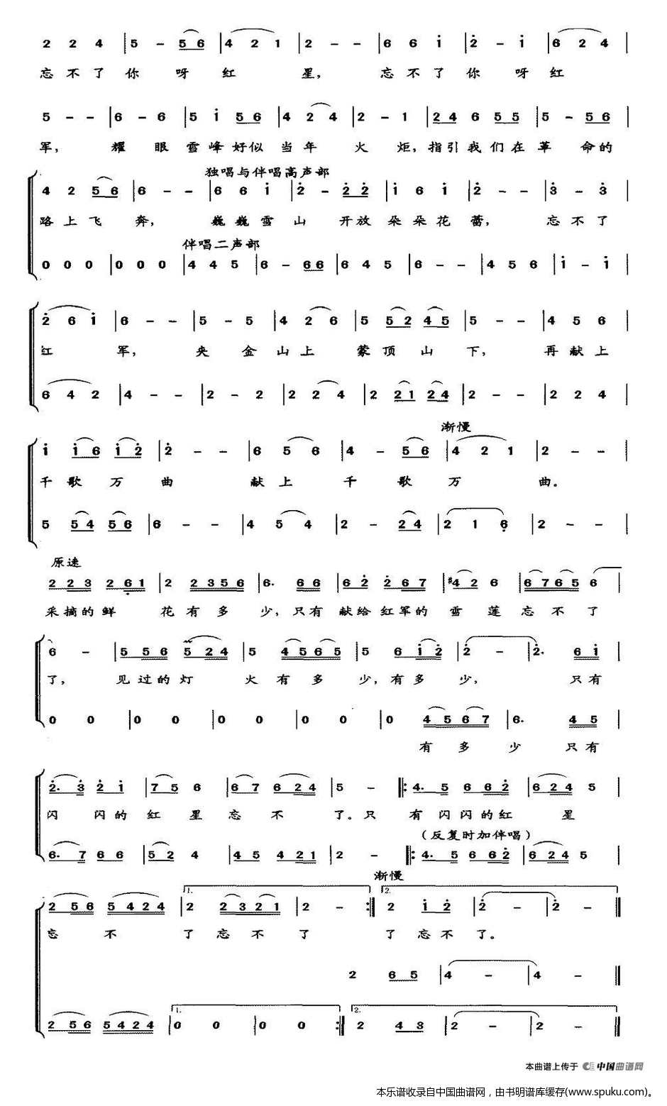 忘不了 夹金山 合唱谱