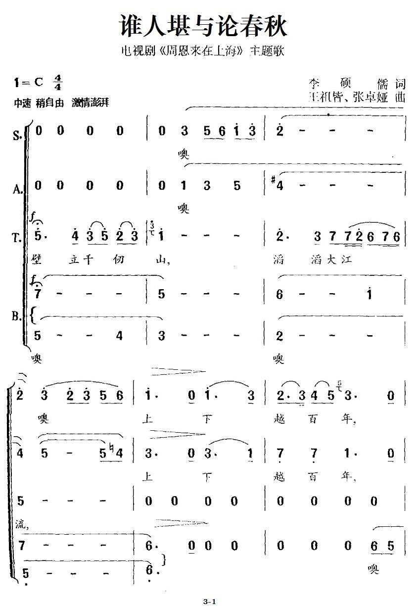 > 谁人堪与论春秋 电视剧 周恩来在上海 主题歌