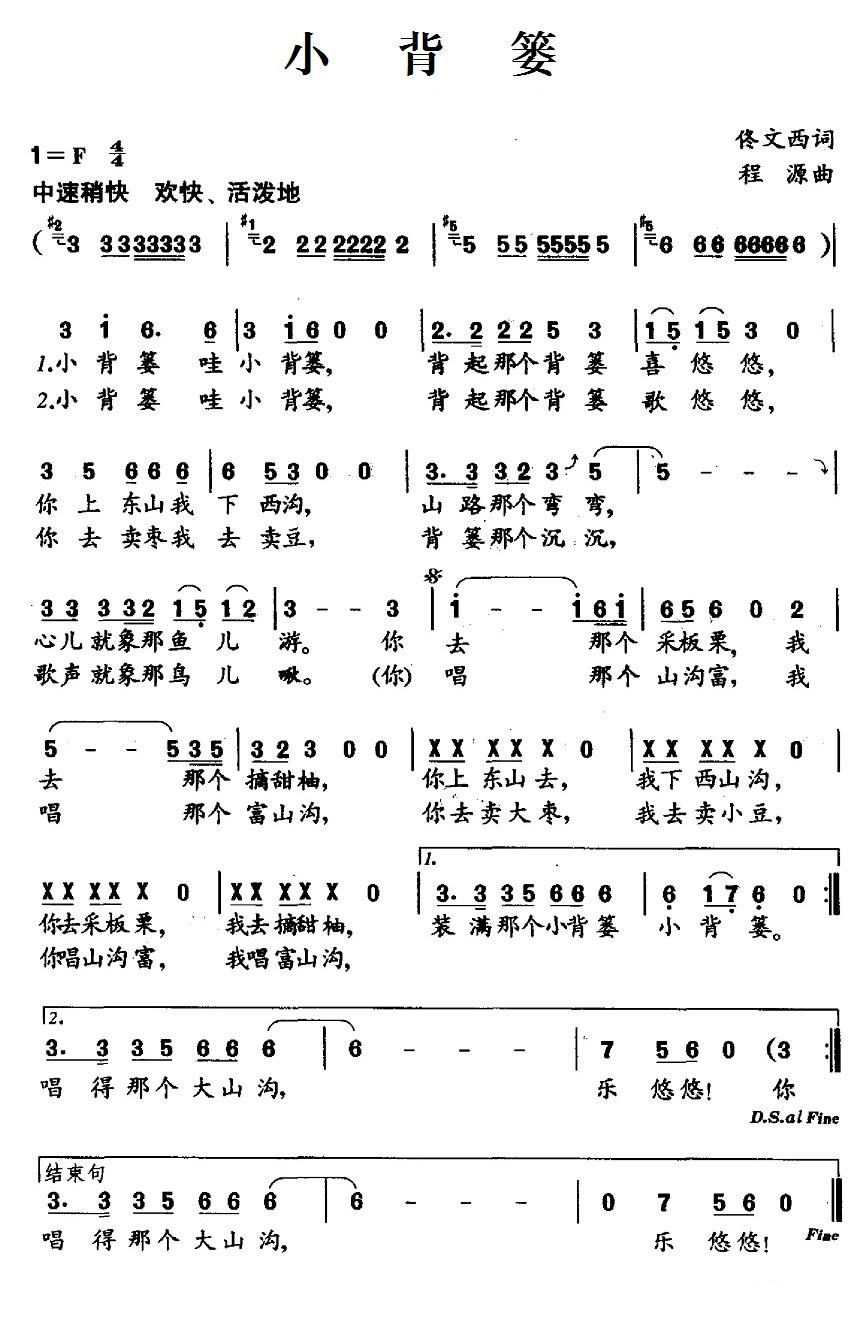 - [歌谱] 小背篓