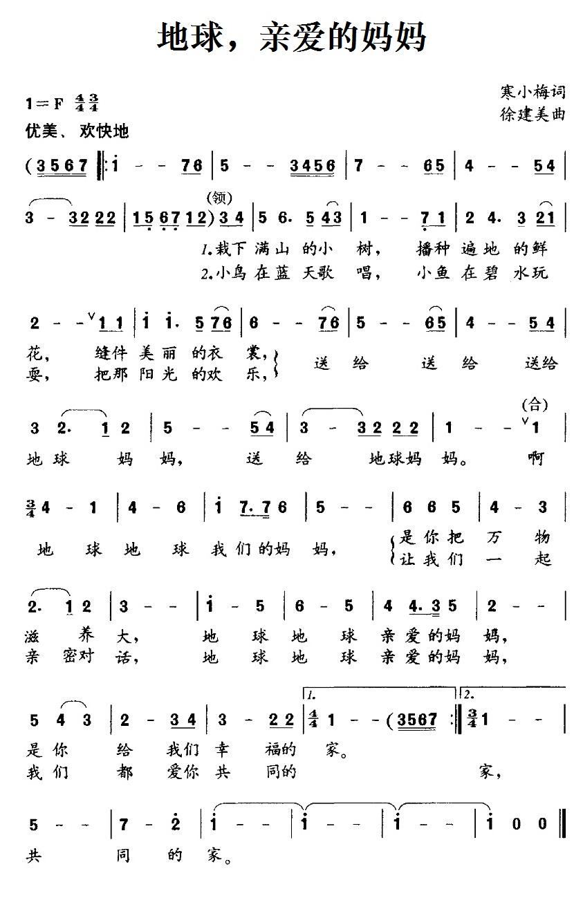 > 地球 亲爱的妈妈