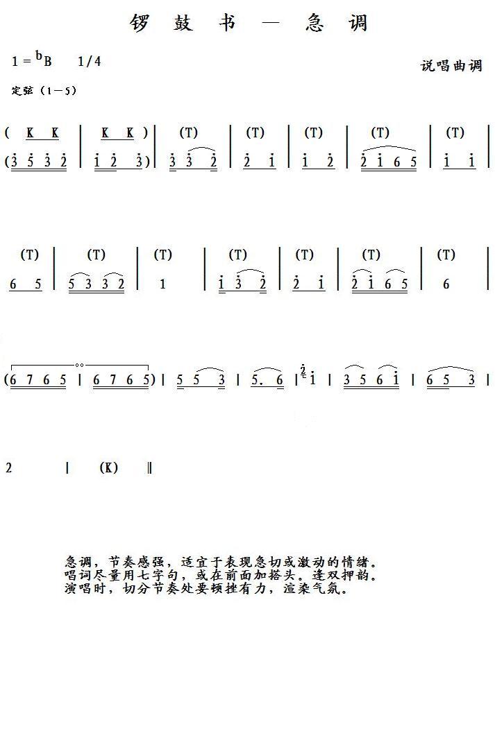 - [歌谱] 锣鼓书 基本调 一