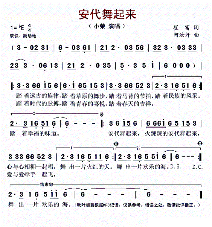 - [歌谱] 蓝色的哈达 乌兰雪荣