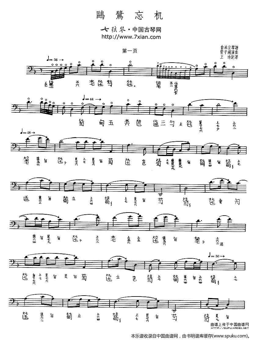 鸥鹭忘机 古琴谱 管平湖演奏版