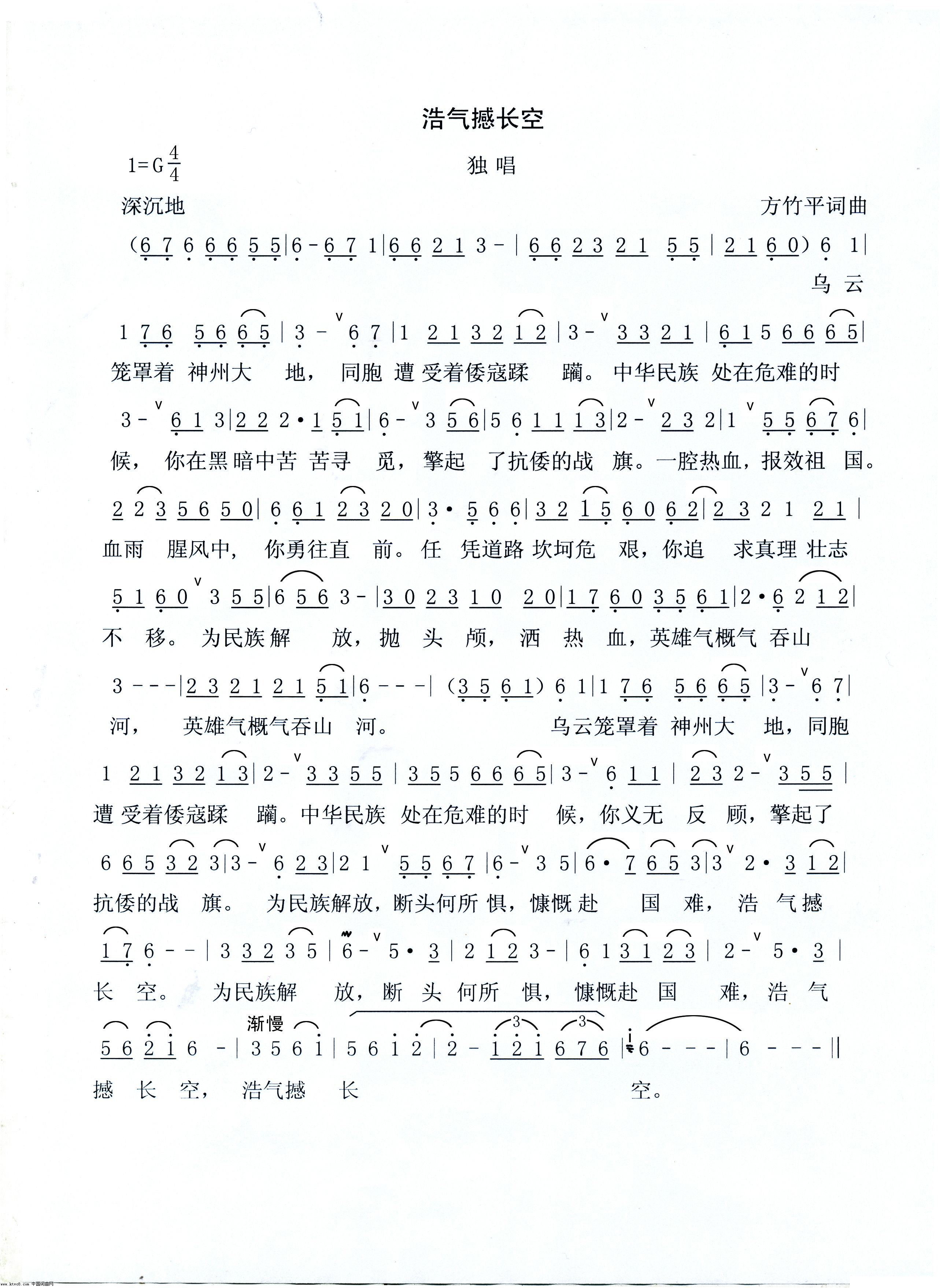 > 浩气撼长空 电视剧 吉鸿昌 主题歌曲应征作品