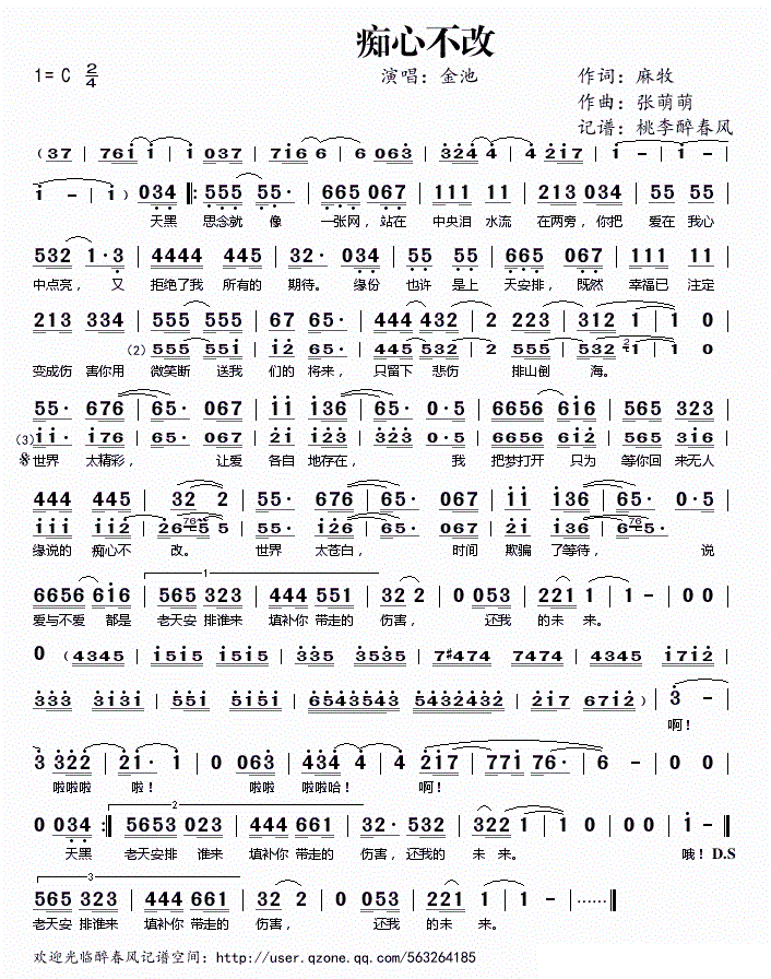 - [歌谱] 痴心决不改 射雕英雄传 插曲 粤语