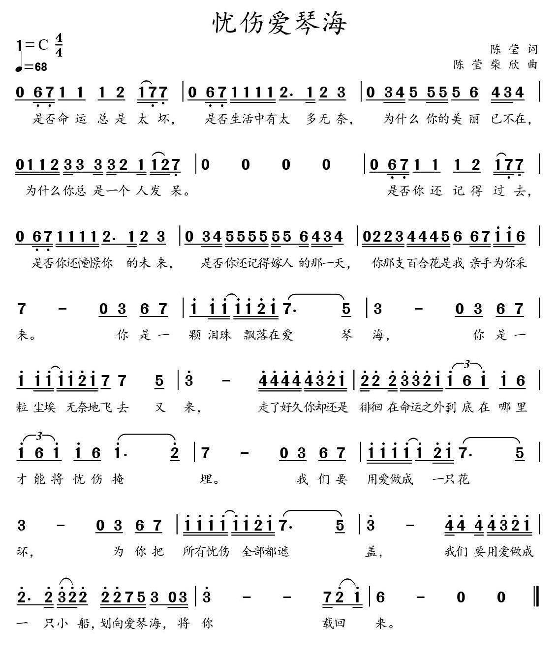 - [歌谱] 爱琴海 央金兰泽 彩谱