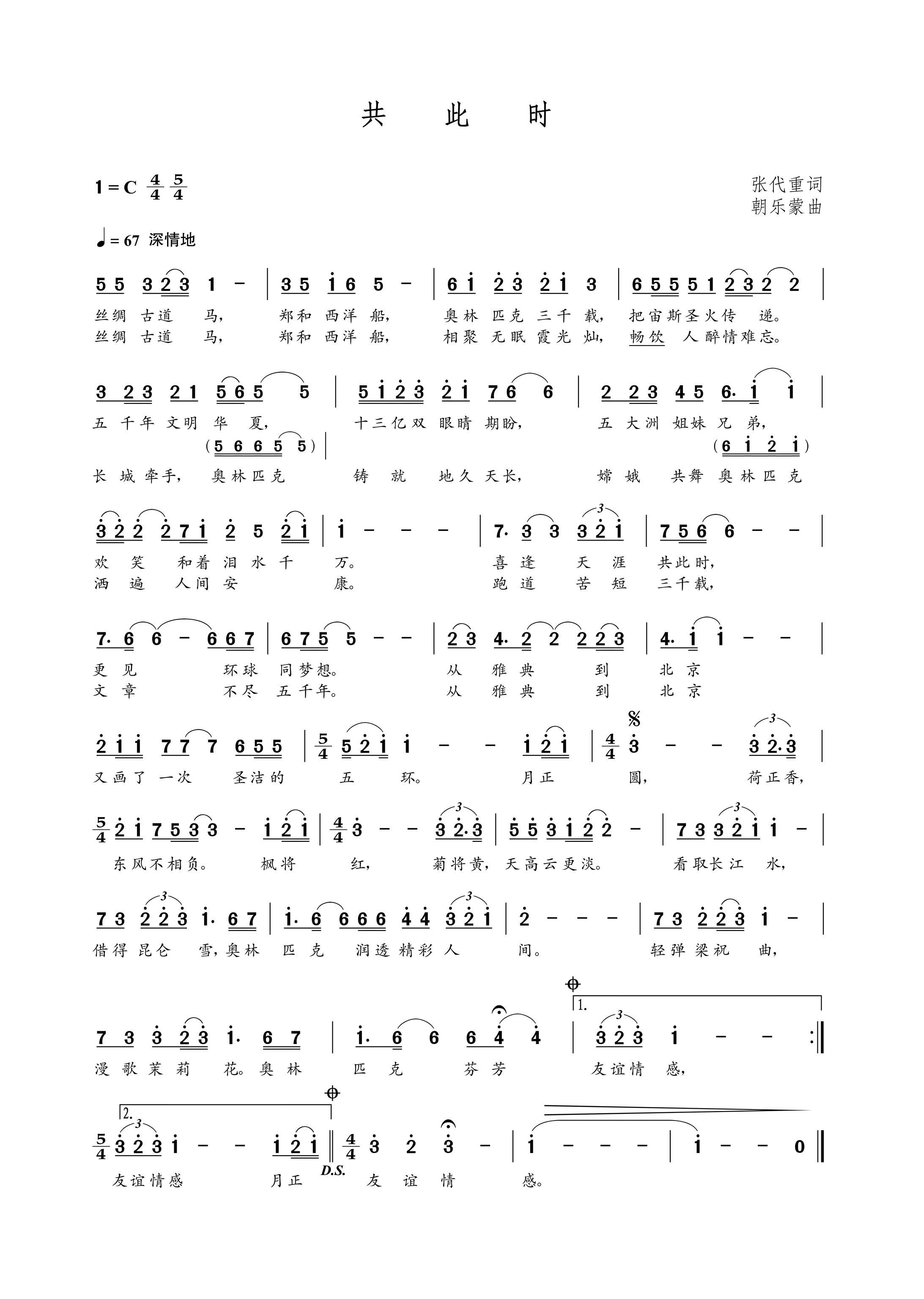 天涯共此时 2010广州亚运会主题曲 彩谱