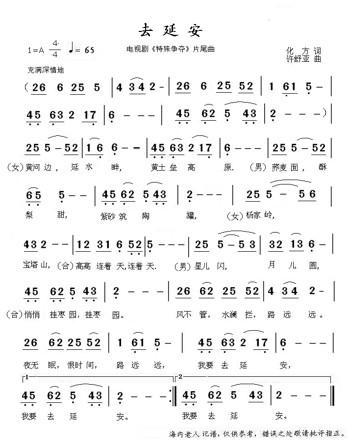 - [歌谱] 去延安