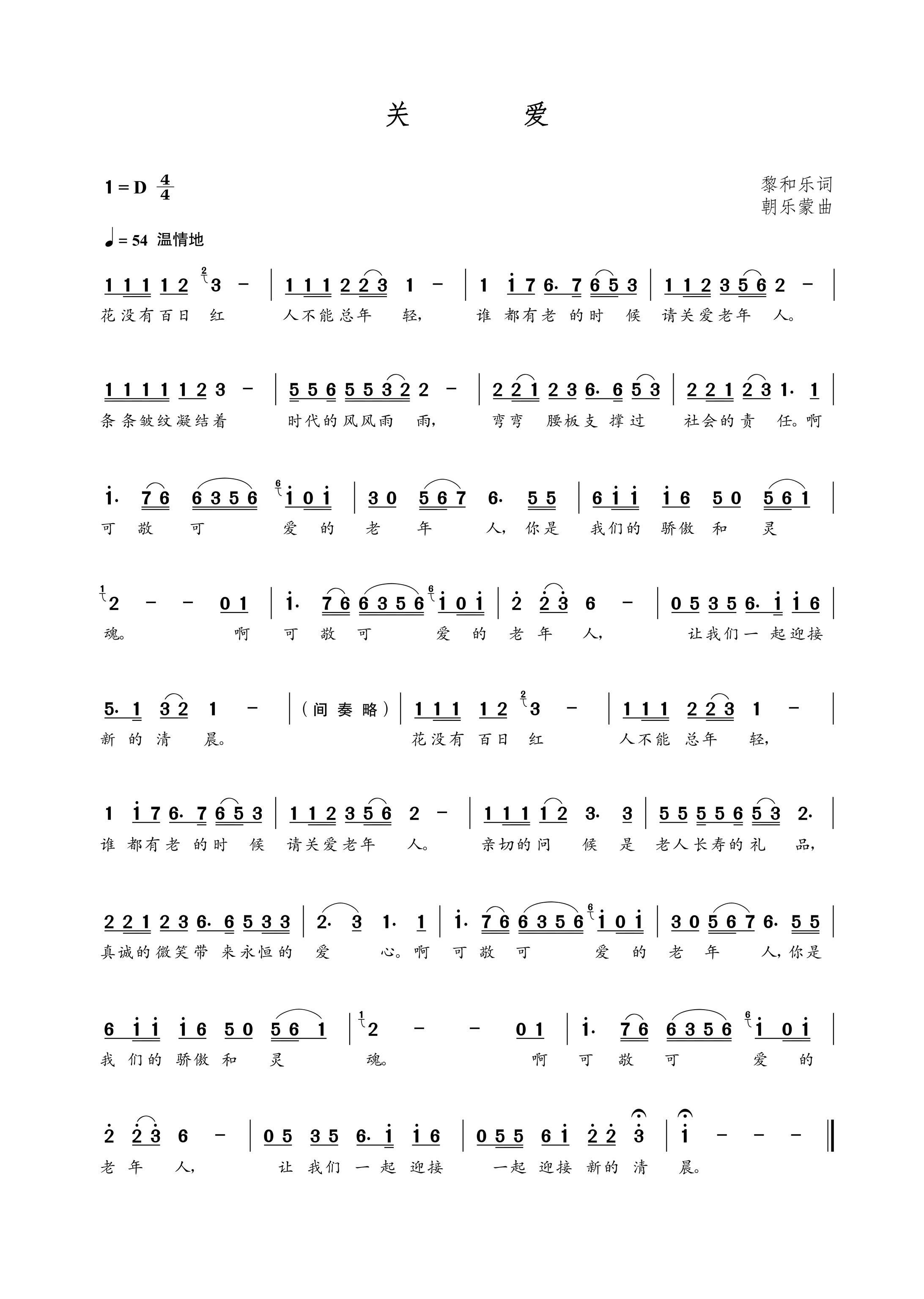 - [歌谱] 关爱