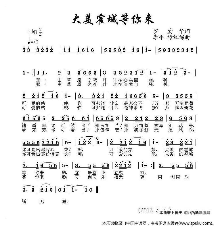 - [歌谱] 美丽霍城等你来