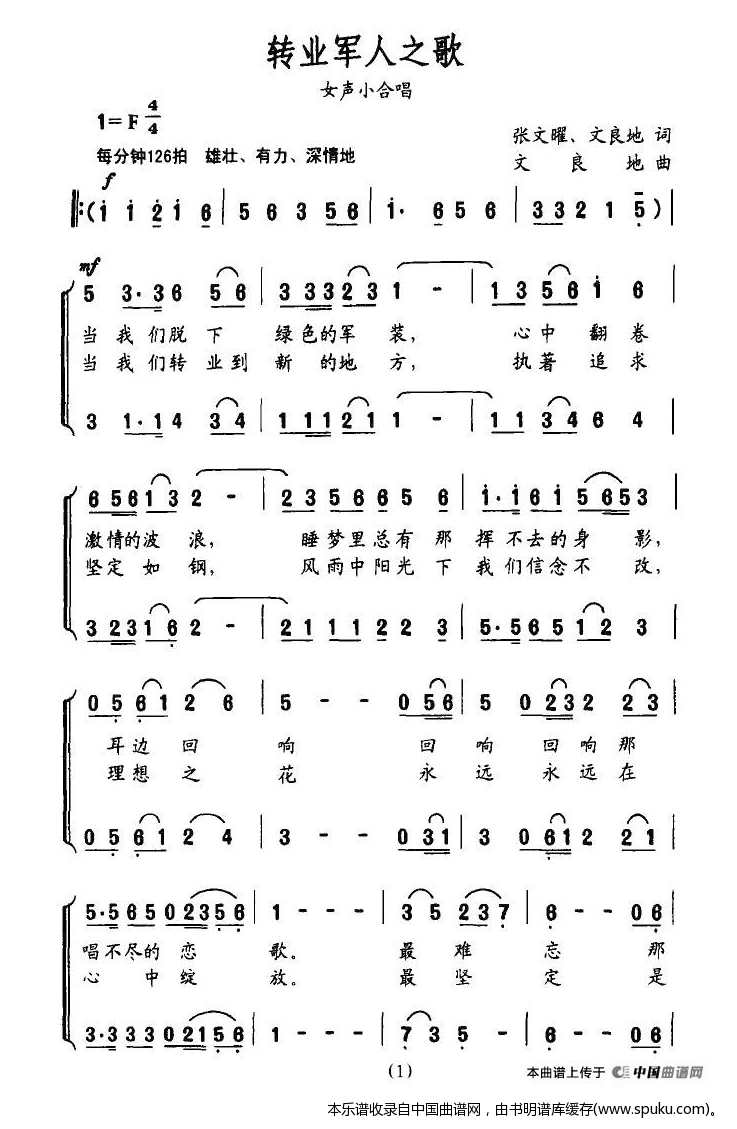 转业军人之歌 合唱谱