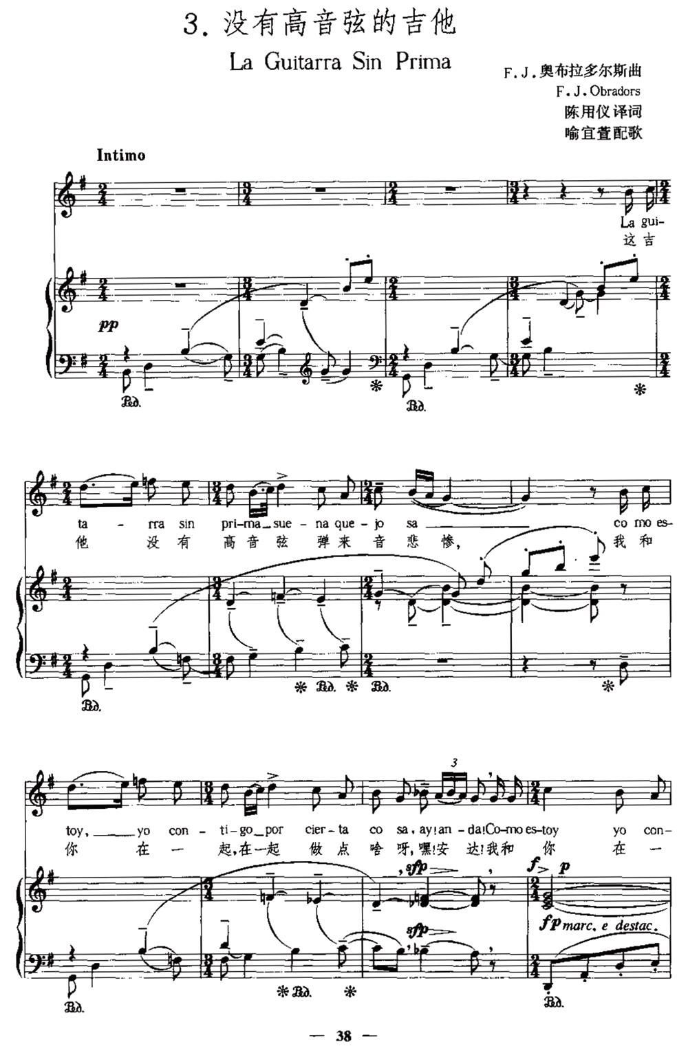 > 西班牙 没有高音弦的吉他 中外文对照