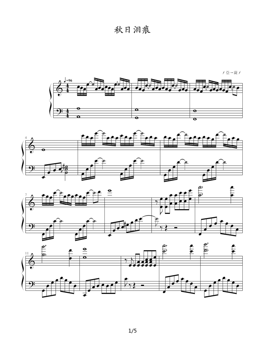 - [钢琴谱] 秋日泪痕 亞 薩