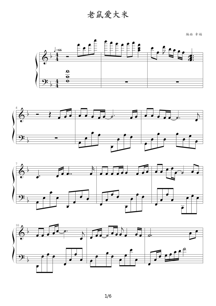 - [钢琴谱] 老鼠爱大米 杨臣刚
