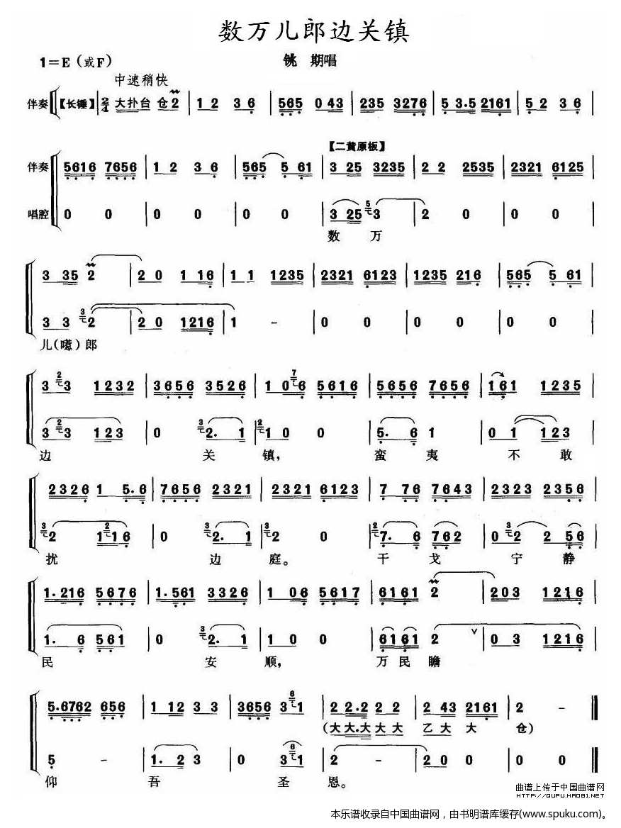 > 数万儿郎边关镇 铫期唱段 京剧戏谱