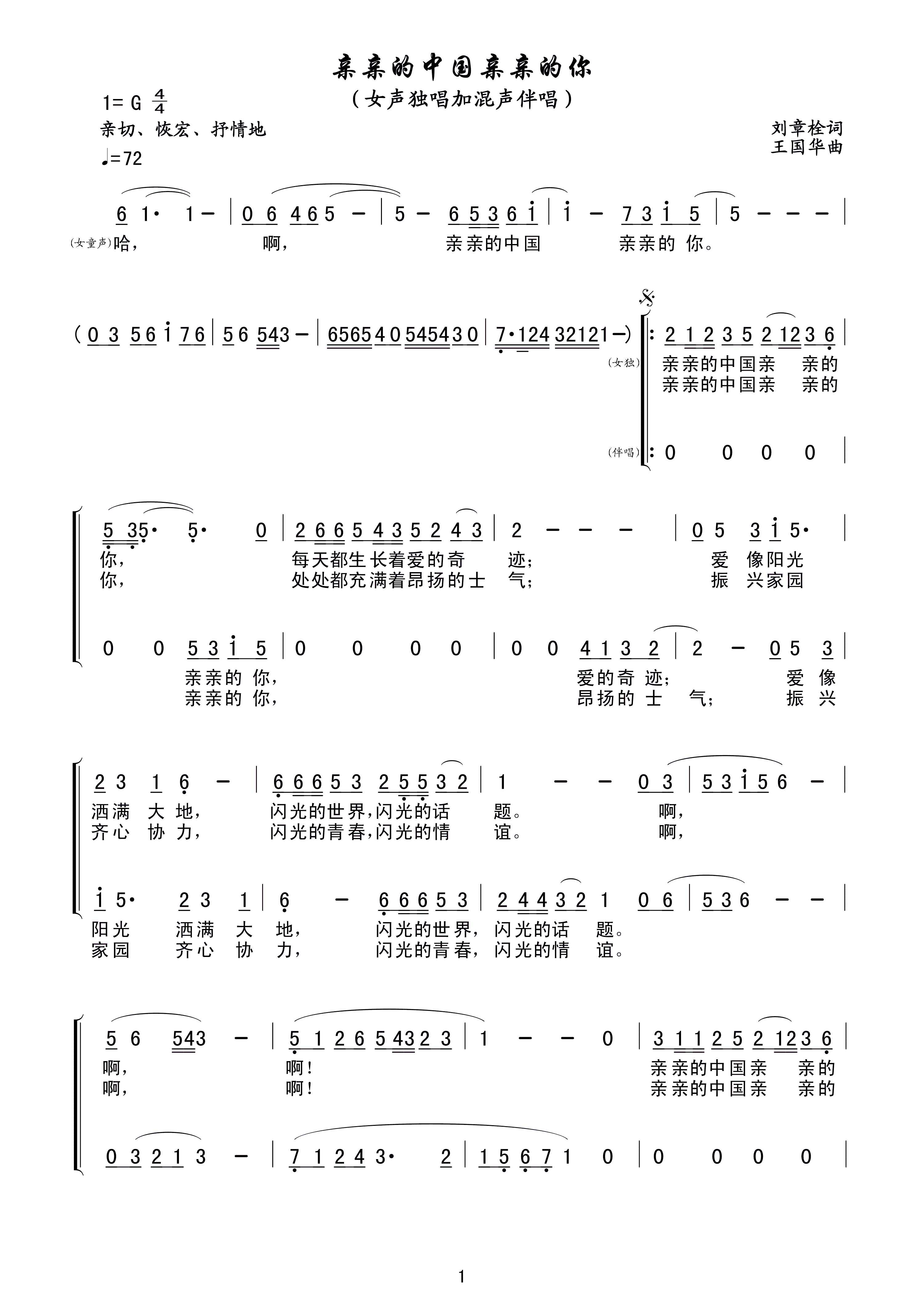 - [歌谱] 亲亲的中国亲亲的你