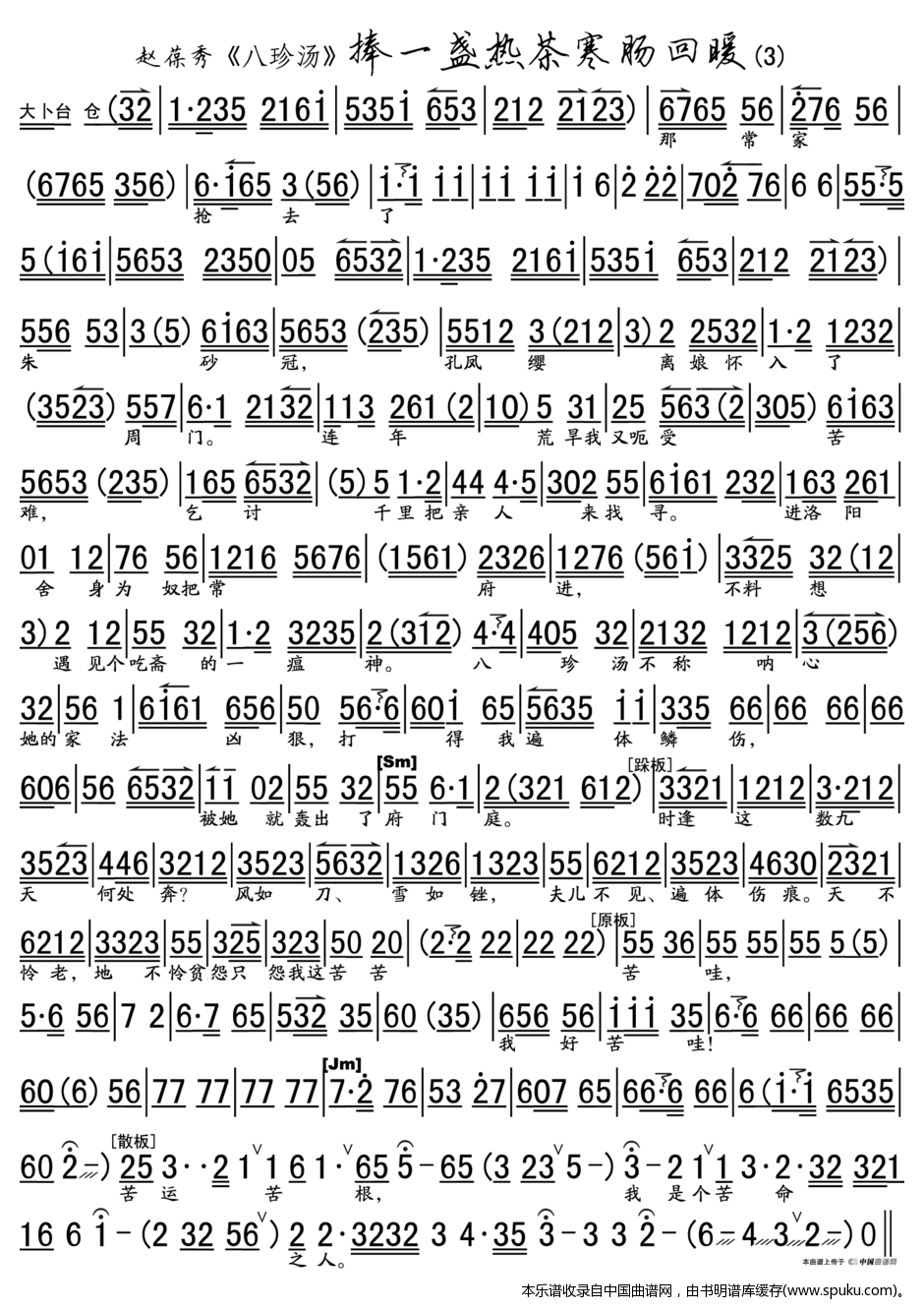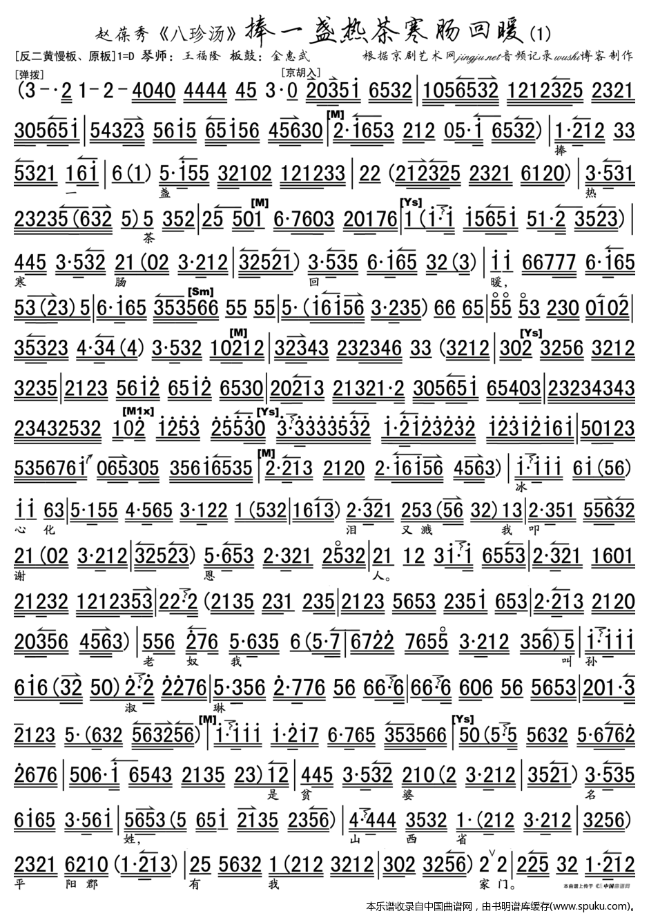 > 捧一盏热茶儿寒肠回暖 八珍汤 选段 琴谱 京剧戏谱