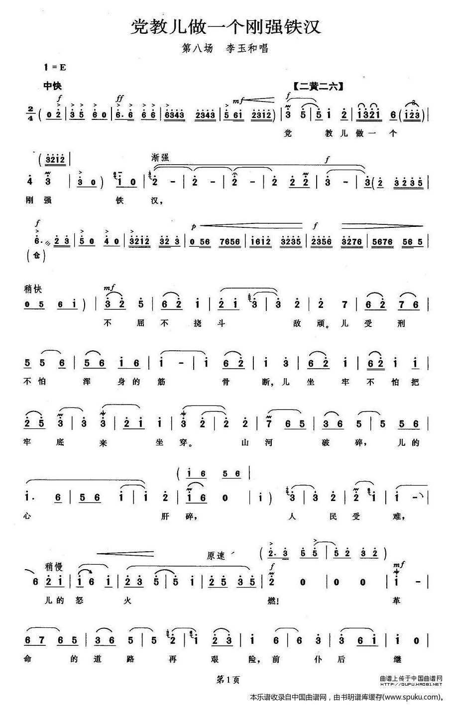 党教儿做一个刚强铁汉 李玉和唱腔 京剧 琴谱