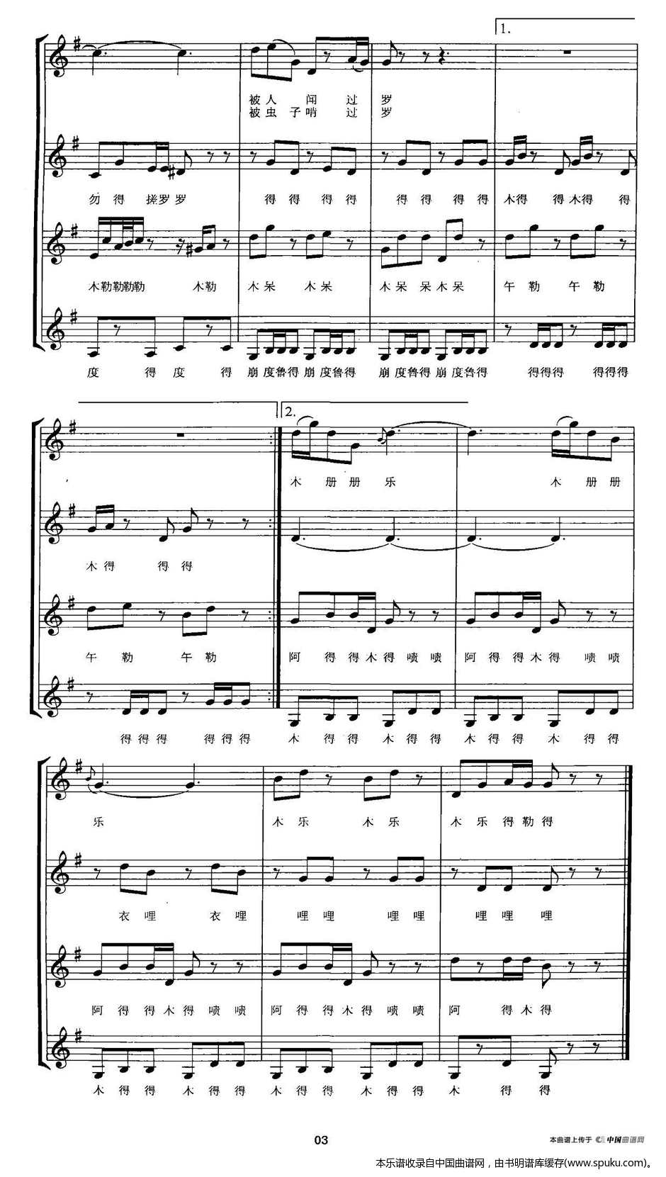 哥是阳沟妹是水 无伴奏合唱 合唱谱