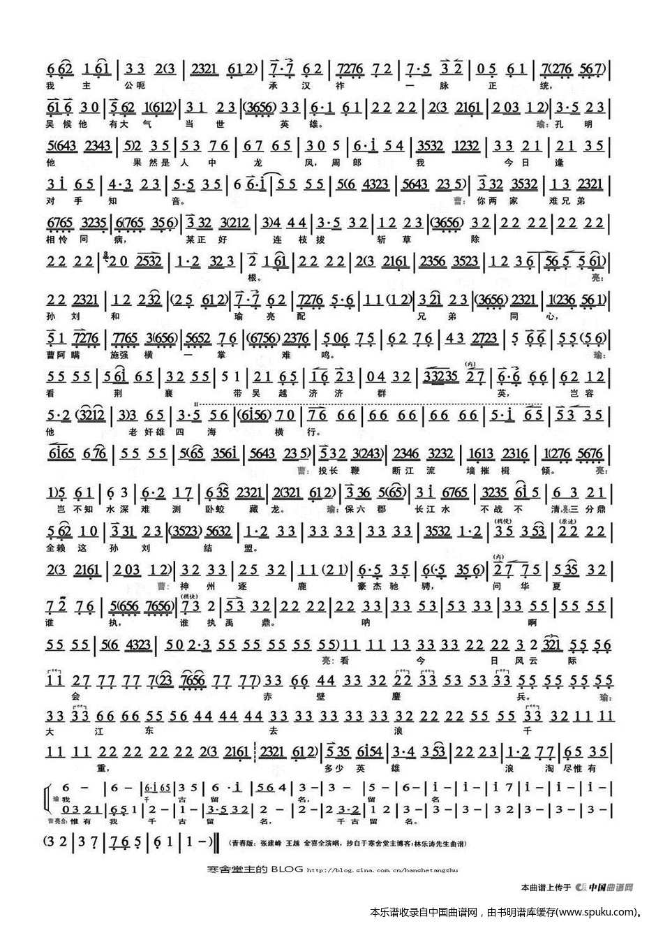 结成了孙刘盟抗曹之阵 赤壁 诸葛亮 周瑜 曹操对唱 琴谱