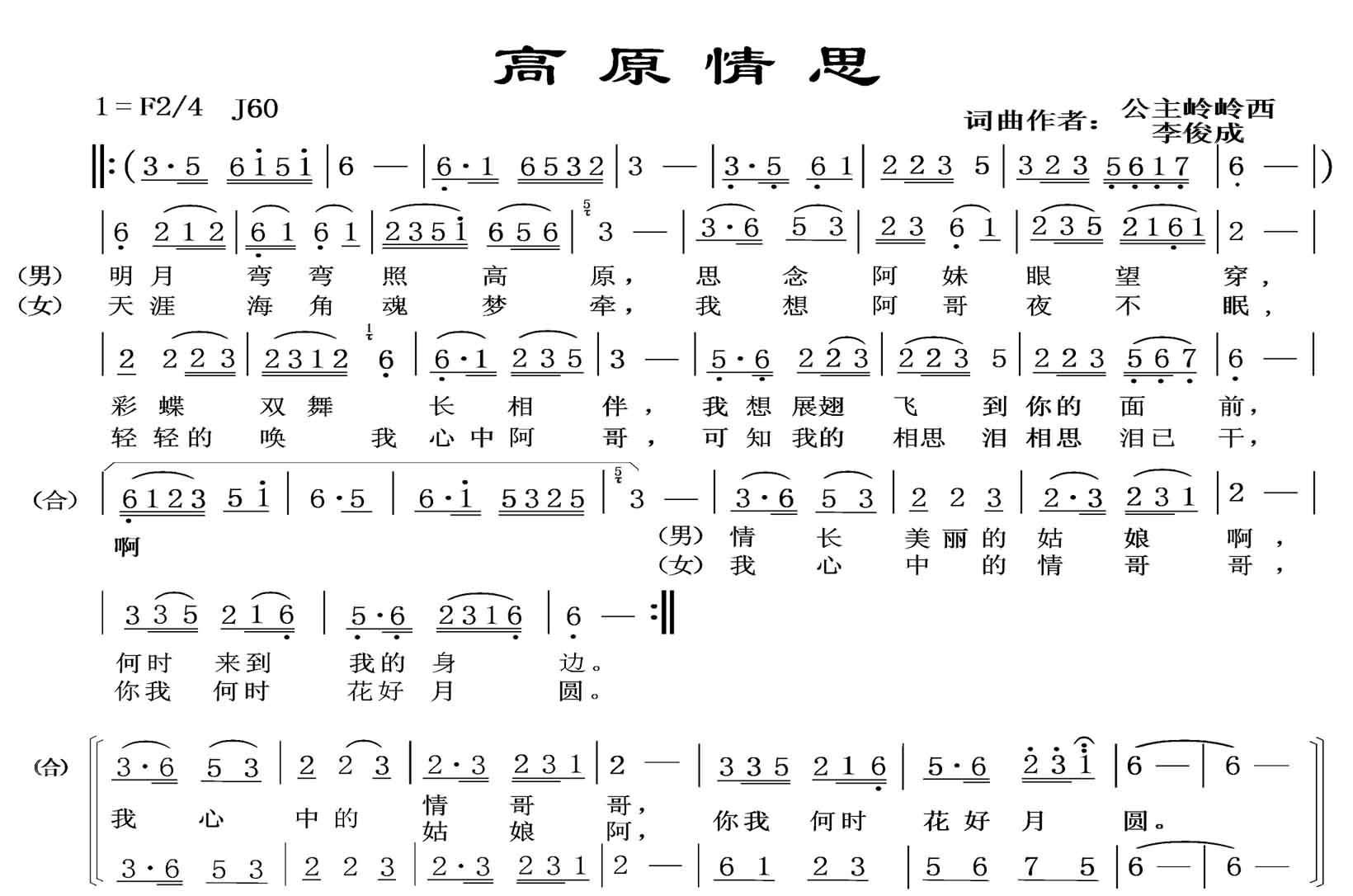 - [歌谱] 高原山歌