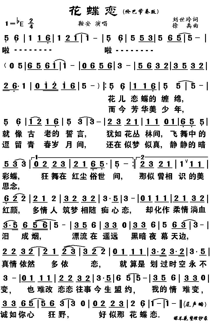 - [歌谱] 蝶恋花 又名 红尘蝶恋