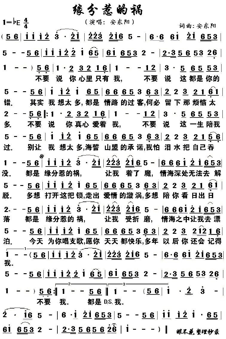 - [歌谱] 缘分惹的祸 安东阳