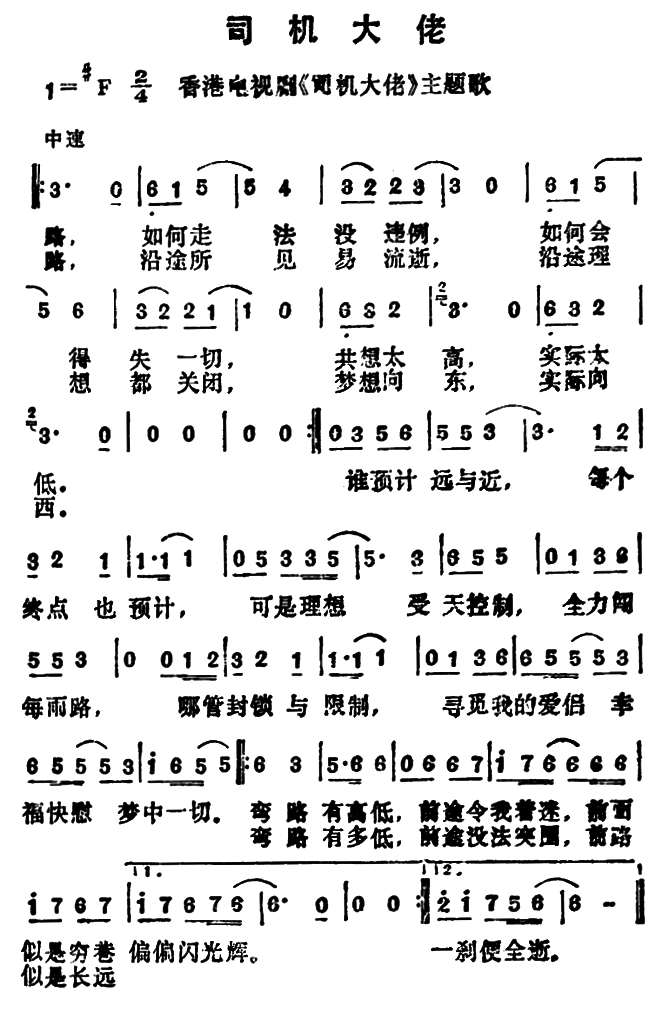 > 司机大佬 香港电视剧 司机大佬 主题歌