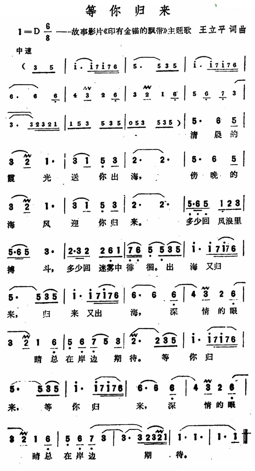 > 等你归来 故事影片 印有金锚的飘带 主题歌