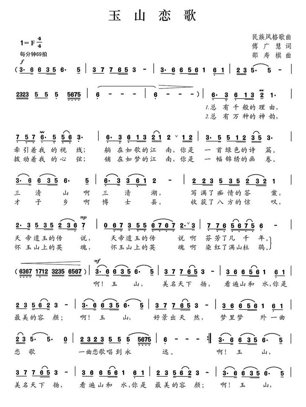 - [歌谱] 玉山恋歌
