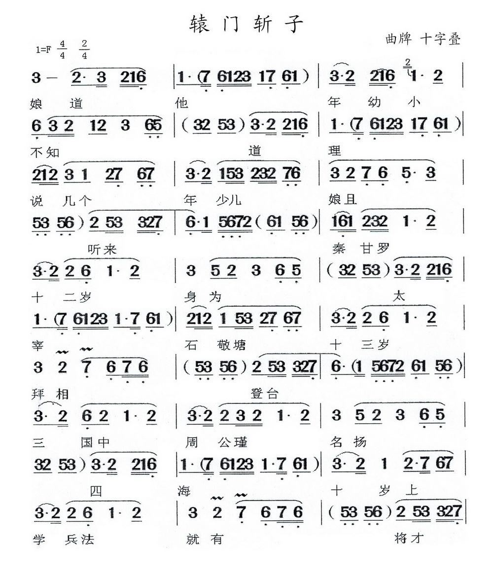 忽听得老娘亲来到帐外 辕门斩子 选段 琴谱 京剧戏谱