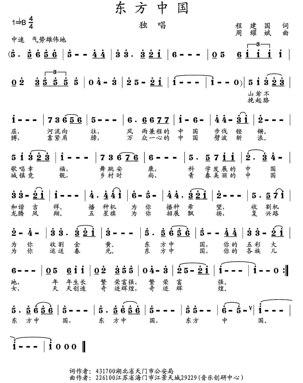 - [歌谱] 东方中国