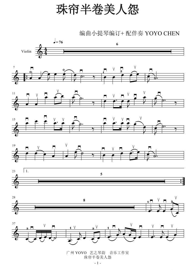 - [歌谱] 卷珠帘