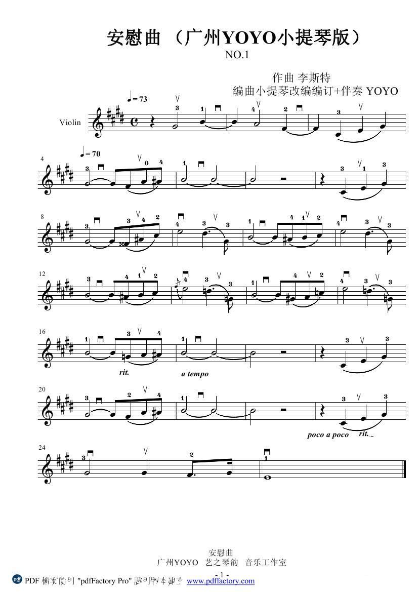 安慰 钢伴谱 弦乐类 小提琴
