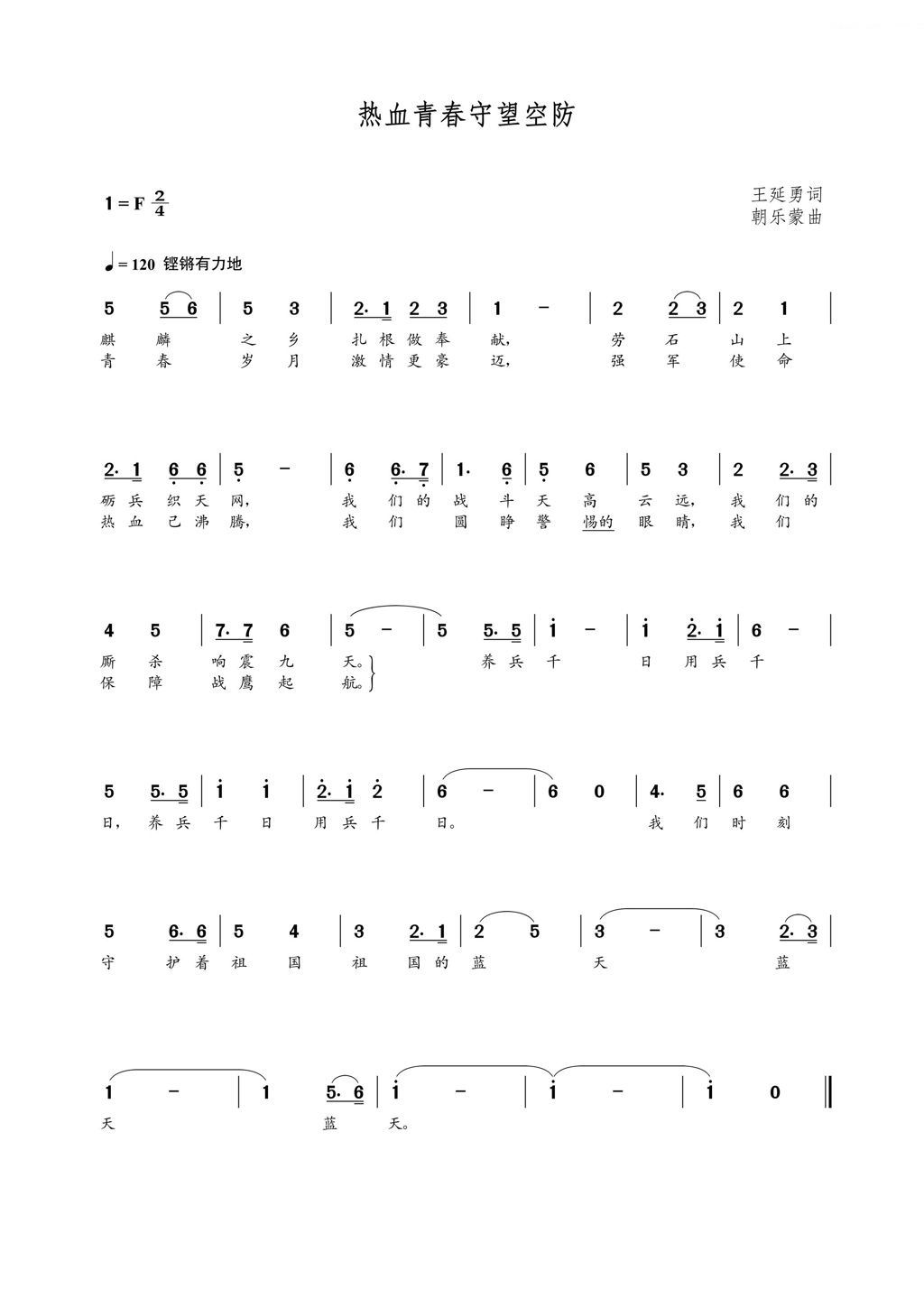 - [歌谱] 热血颂