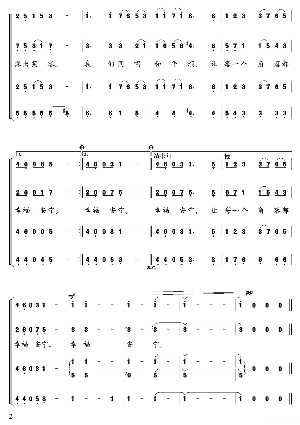 - [歌谱] 和平颂