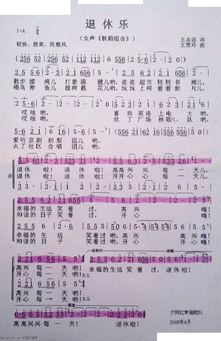 > 退休乐 表演唱 唱录混 单声部范唱小样