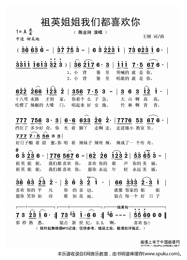 > 祖英姐姐我们都喜欢你 陈业珂