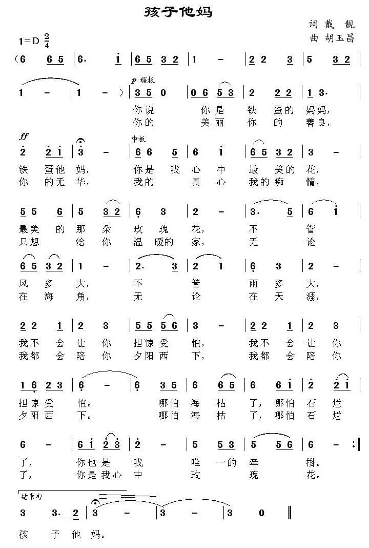 - [歌谱] 孩子他妈