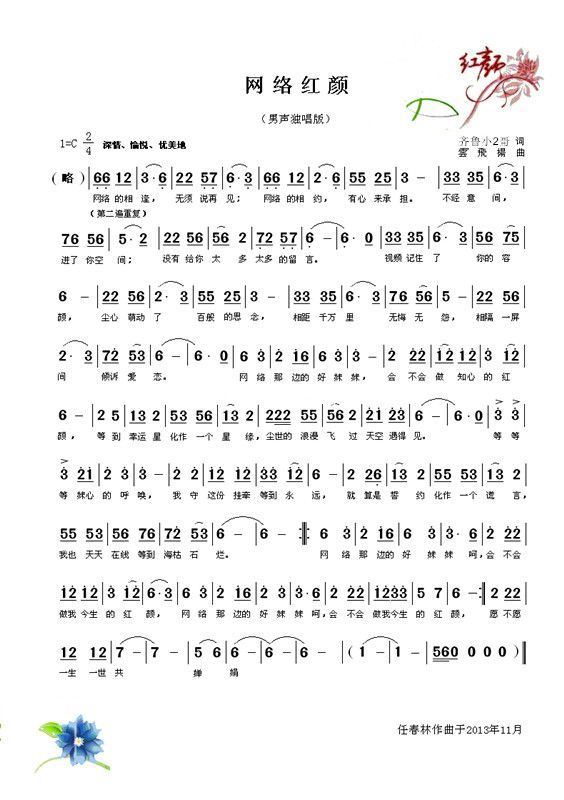 - [歌谱] 你是谁的红颜 男声版 网络歌手