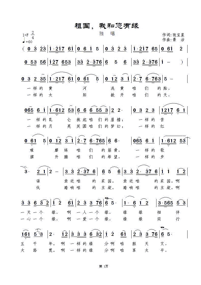 - [歌谱] 祖国 我以谷穗的名义爱你